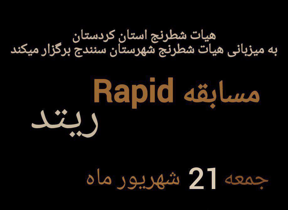 مسابقات سریع ریتد شطرنج به مناسبت ولادت پیامبر اکرم (ص) و هفته وحدت، روز جمعه ۲۱ شهریور به میزبانی هیأت شطرنج شهرستان سنندج برگزار میشود.